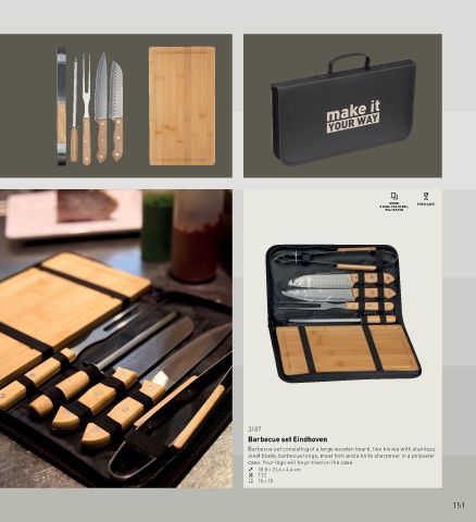 Barbecue set consisting of a large wooden board, two knives with stainless