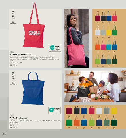 Eco-friendly cotton bag with long handles, in different colors and a